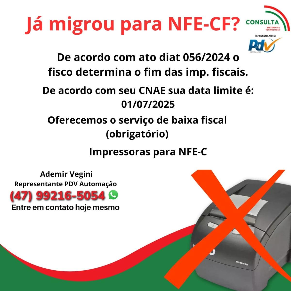 Se sua empresa ainda tem impressora(s) fiscal(ais) (Ecfs) ativas precisa saber que todas deverão ser cessadas nos prazos estipulados conforme nova resolução, lembrando que o prazo máximo é 01/07/2025. Após esses prazos poderá haver multa, bloqueio das Ecfs (impossibilitando novas vendas).